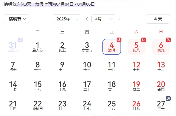 根據(jù)國家2025年春節(jié)放假通知并結(jié)合本司實(shí)際情況,放假做以下調(diào)整:1、放假時(shí)間:2025年4月4日至2025年4月6號(hào),共3天,3月7號(hào)正常上···